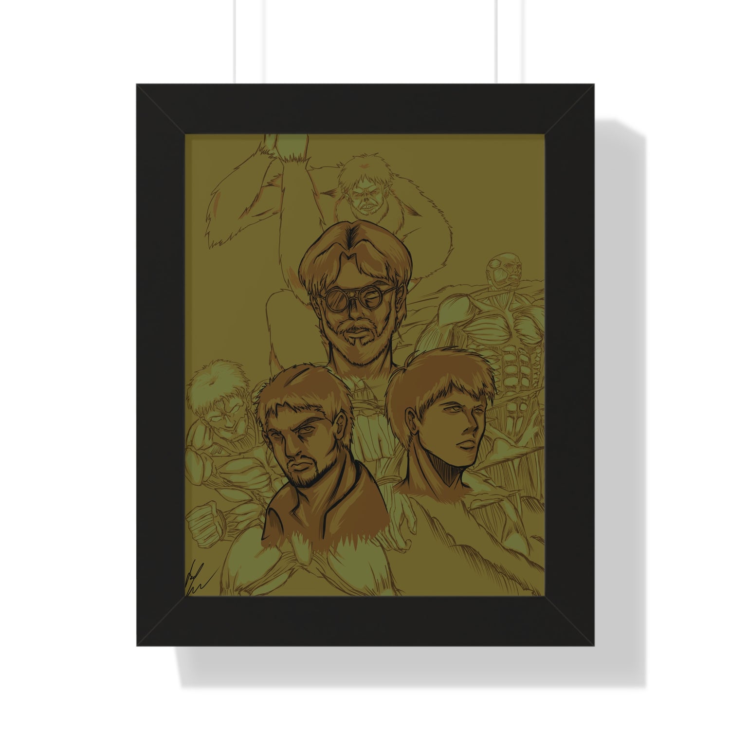 Attack on Titan Black and White-Framed Vertical Poster